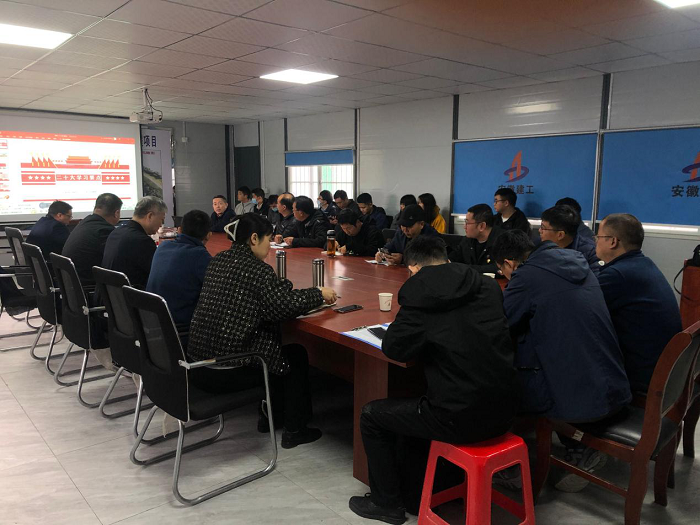 11月23日上午,公司黨委委員、副總經(jīng)理趙伯平深入項目一線,在房建(裝飾)分公司阜南污水廠項目宣講黨的二十大精神。公司總工程師吳繼成、公司相關(guān)部門負(fù)責(zé)同志及分公司班子成員、全體黨員干部職工近40人參加。