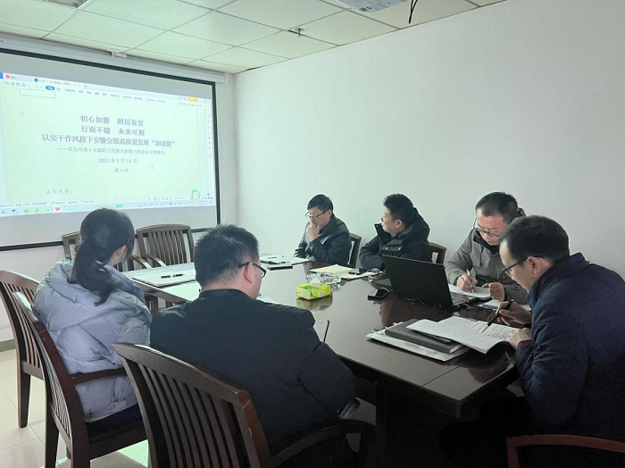 會上,分公司黨支部書記、經(jīng)理龍海健重點(diǎn)宣貫、詳細(xì)解讀了公司黨委書記、董事長胡六中在公司十七屆三次職代會上所作的題為《初心如磐踔厲奮發(fā)行而不輟未來可期以實(shí)干作風(fēng)按下安徽安裝高質(zhì)量發(fā)展“加速鍵”》的報(bào)告精神,對分公司2023年度主要任務(wù)指標(biāo)和重點(diǎn)工作進(jìn)行了傳達(dá)部署。通過學(xué)習(xí),分公司全體員工對公司2022年取得的成績有了深刻的認(rèn)識,進(jìn)一步明確了公司2023年的奮斗目標(biāo)、工作思路和部署安排。