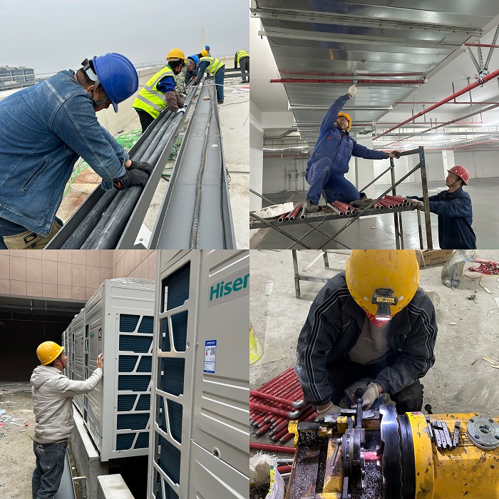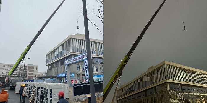 2月11日,按照計劃安排,項目部需要將80臺空調(diào)外機吊運至樓頂平臺,該項目樓頂高度雖然只有25米,但是由于項目以進入安裝階段,現(xiàn)場塔吊及人貨電梯早已拆除,加之室外又在進行地面道路施工,吊車靠不上去,吊運就變得異常困難。項目部經(jīng)過勘察工程周邊施工環(huán)境,精準測量吊裝距離,制定了嚴格的設(shè)備吊裝專項施工方案,采用200T吊車進行吊裝作業(yè)。在設(shè)備吊裝過程中,項目部嚴格做好作業(yè)人員安全技術(shù)交底,拉好作業(yè)警戒線,樓下樓上合理安排人員進行安全監(jiān)督,通過近14小時的連續(xù)作業(yè),終于在夜里9點多鐘完成全部設(shè)備的吊運任務(wù)。