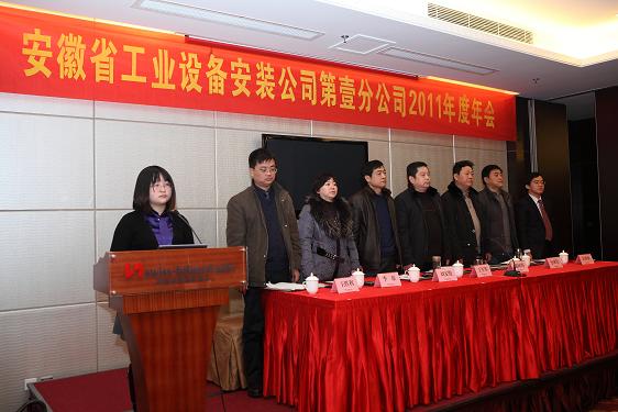 2011年1月18日上午9時(shí),安徽省工業(yè)設(shè)備安裝公司第壹分公司2011年度年會(huì)在浙商瑞雅國(guó)際大酒店2樓會(huì)議廳隆重舉行,總經(jīng)理王軍邦、黨委書記戴樹明、副總經(jīng)理劉安俊等一行蒞臨會(huì)議。