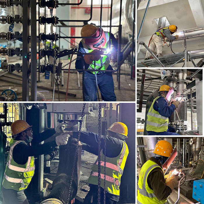 面對建設(shè)單位準(zhǔn)備在5月下旬進(jìn)行試生產(chǎn)的目標(biāo)任務(wù),車間內(nèi)新增管線是否能夠按時完成就成為確保試生產(chǎn)順利進(jìn)行的最大難題。為此,項目部精心組織、加強(qiáng)協(xié)調(diào),認(rèn)真部署,通過多次召開碰頭會最終達(dá)成最優(yōu)施工進(jìn)度方案,做到明確每日進(jìn)度內(nèi)容,合理安排施工人員,積極做好施工現(xiàn)場各項安全防護(hù)工作,在保證原有工程量的基礎(chǔ)上,對新增管線進(jìn)行科學(xué)分解,新增突擊作業(yè)隊,采用“5+2”“白加黑”,多個小組多工作面同時施工的方法,開足馬力快速推進(jìn),從而大大提高了施工速度,提升了工作效率。