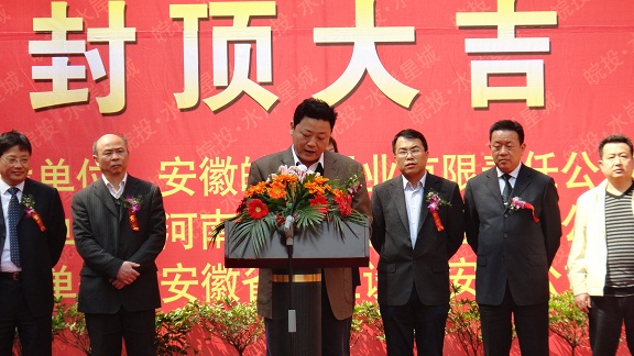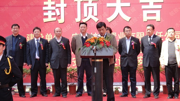 皖投置業(yè)總經(jīng)理耿文女士在慶典上發(fā)表講話,對(duì)我公司全體人員的工作給予了充分的肯定,并表示皖投水岸星城一期三標(biāo)段工程的順利封頂,奠定了皖投置業(yè)與省安裝公司成為長期戰(zhàn)略合作伙伴的基礎(chǔ)。