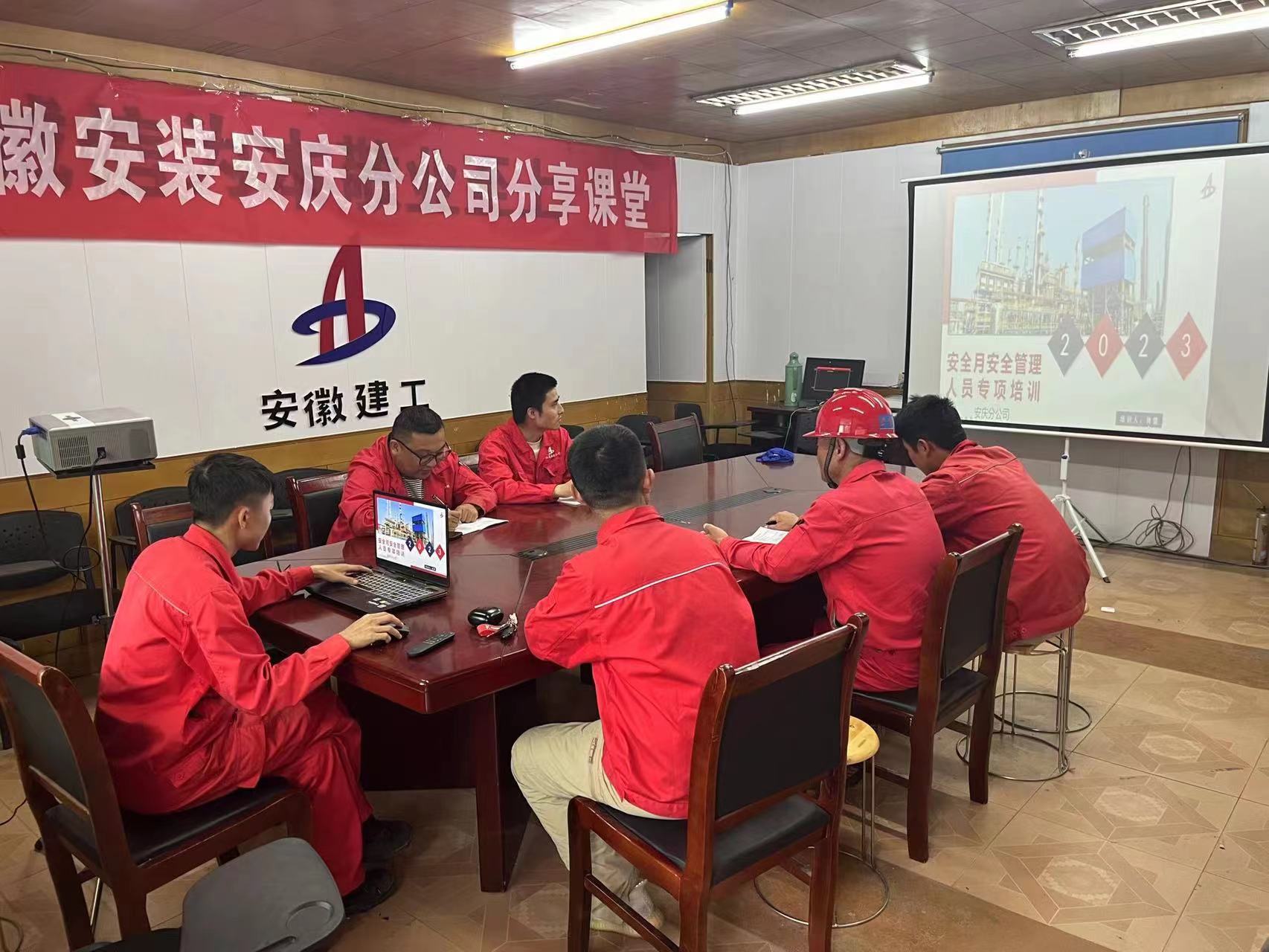 6月5日開展安全監(jiān)護(hù)人員和班組負(fù)責(zé)人專項(xiàng)培訓(xùn),重點(diǎn)學(xué)習(xí)安慶石化各項(xiàng)管理規(guī)定及體系檢查中參與建設(shè)注意事項(xiàng)