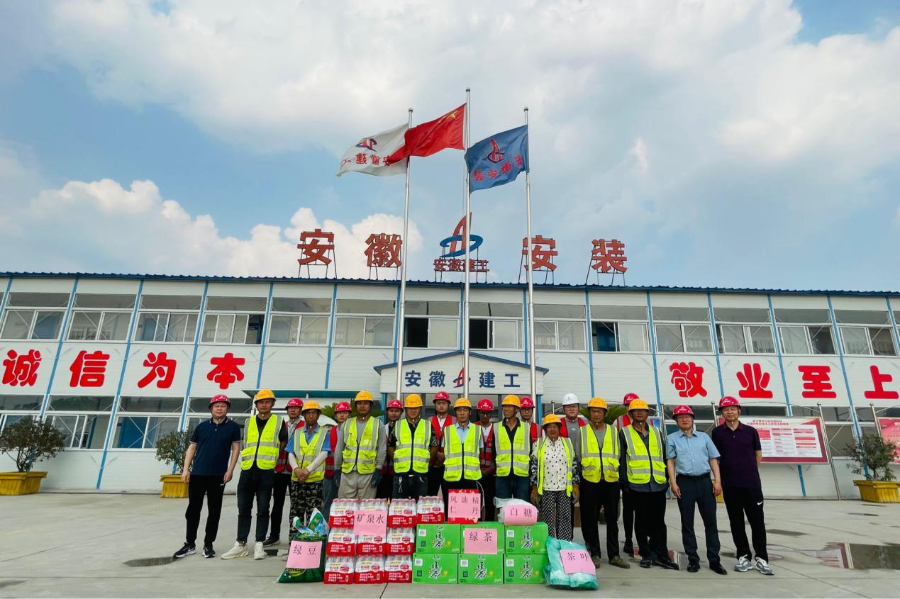 近日高溫來(lái)襲,為做好夏季高溫作業(yè)勞動(dòng)保護(hù)工作,6月13日下午,蚌埠分公司經(jīng)理、黨支部副書記趙銘亮,黨支部書記、副經(jīng)理王偉,副經(jīng)理趙榮珣前往輝隆項(xiàng)目部開展送清涼慰問(wèn)活動(dòng),為項(xiàng)目部管理人員和工人們免費(fèi)發(fā)放防暑降溫清涼物資。