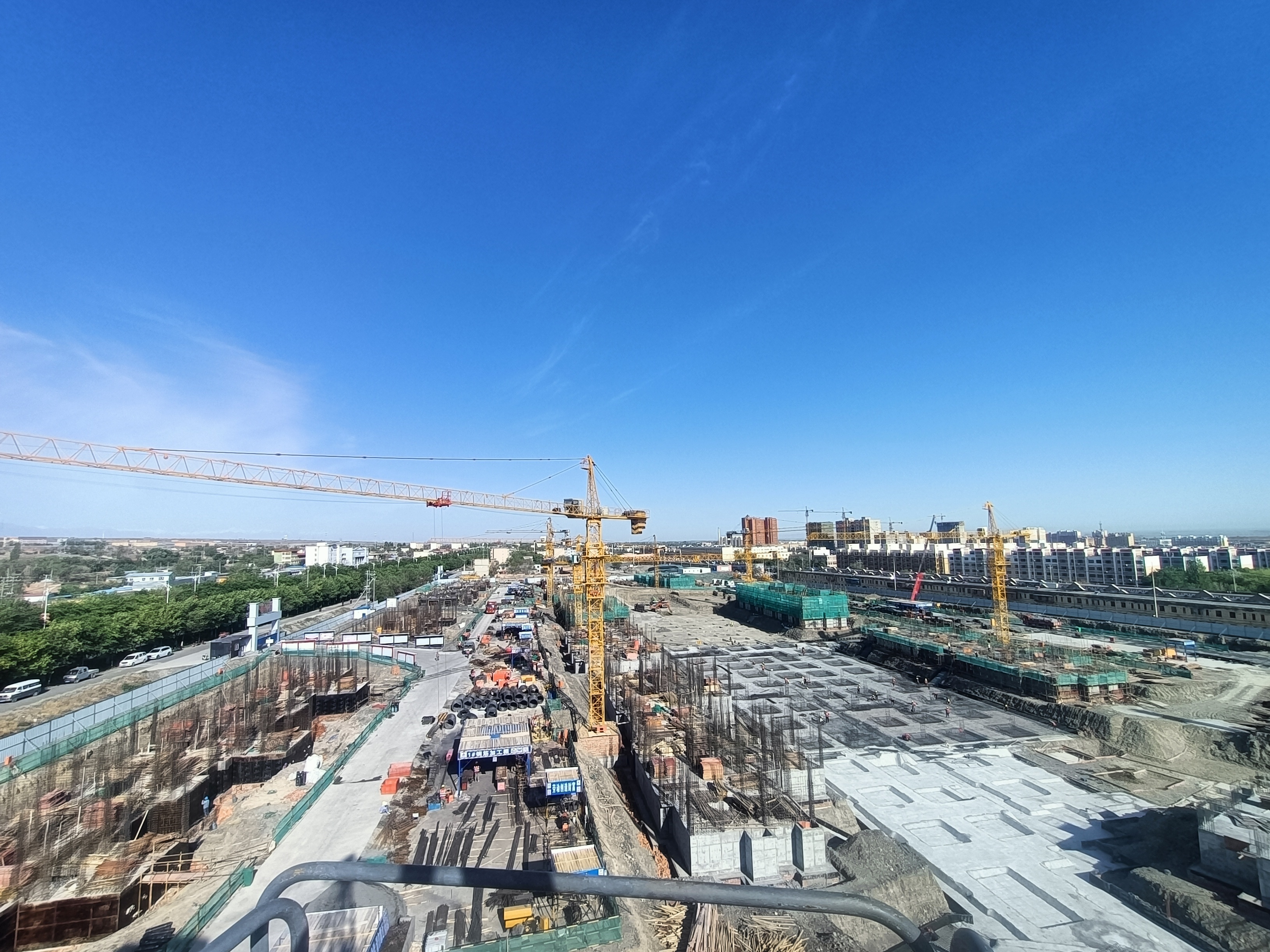 烏蘇市南苑新城項目本項目占地面積118047.31㎡,項目新建34棟住宅樓,1466套住宅,平均層數(shù)10層,總建筑面積222500.41㎡。其中:地上住宅總面積185360㎡,配套商服1209㎡,配套綜合樓1890㎡,日間照料中心1758㎡,社區(qū)物業(yè)用房1869㎡,地下室建筑面積18903㎡,地下車庫及人防建筑面積11511.41㎡,綠化面積42000㎡,配套建設(shè)及附屬工程。截至目前,A區(qū)1,2,3,4基礎(chǔ)土方開挖,筏板防水施工,筏板鋼筋綁扎已完成,6,8,12,13,14,15,16,17,18,20,21,22,23,24#正負零以下結(jié)構(gòu)工程施工完畢;A6,12,21,22,23,24#基礎(chǔ)回填已完畢,一層外架施工已完成70%,一層結(jié)構(gòu)已完成60%;人防地庫土方已開挖至消防水池,總體土方已開挖完成90%,地庫31-38交A-1至A-8軸鋼筋綁扎完成,16-26軸交A-K軸鋼筋綁扎完畢,木工筏板加固模板支護工程已完成50%;B區(qū)換熱站,3,4#土方工程已開挖至基底預(yù)留30CM。