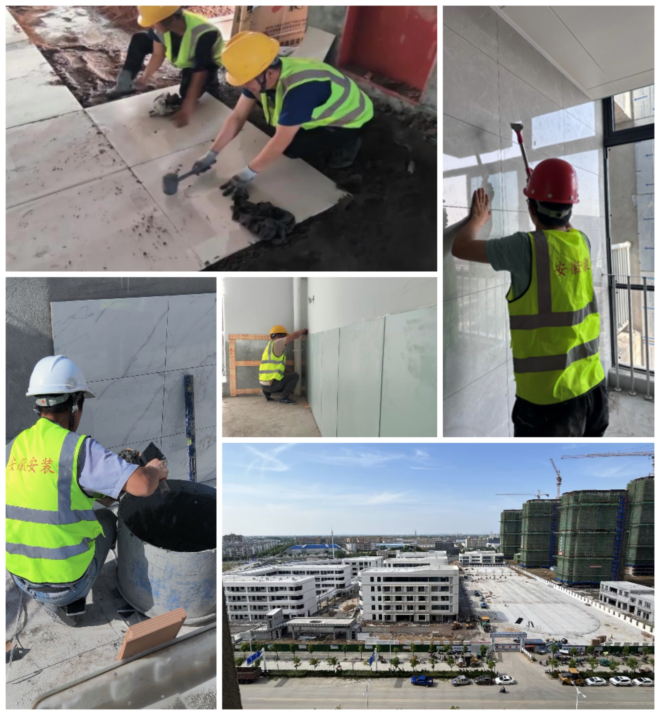 工程自3月份開工以來,經(jīng)過項目部全體人員齊心協(xié)力、加班加點,工程進展迅速。目前室外附屬工程雨污水、綠化、道路水穩(wěn)已完成75%工程量;室內(nèi)裝飾裝修已完成80%工程量,進入最后沖刺階段;外墻保溫及涂料已完成90%工程量;鋼結(jié)構(gòu)工程已施工完畢;外幕墻龍骨焊接已完成70%工程量,正在進入緊張施工高峰階段。