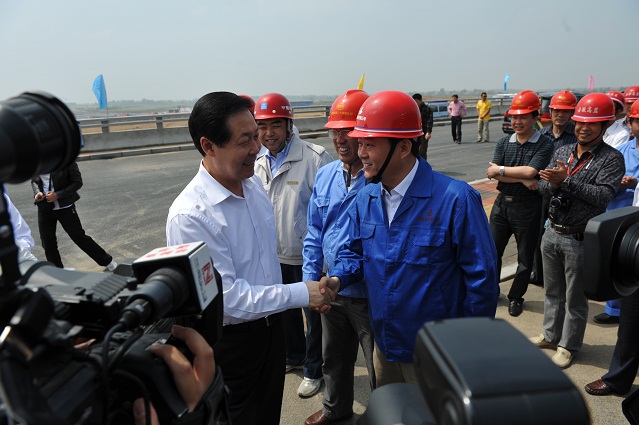 5月12日上午十時許,省委書記張寶順,省委常委、合肥市委書記孫金龍,合肥市市長吳存榮,市委秘書長兼新橋機場建設總指揮安列等一行蒞臨合肥新橋國際機場航站樓工程指導、檢查。安徽省工業(yè)設備安裝公司、中建八局、北京裝飾、中建二十四局、中煤鋼構(gòu)各單位主要領導陪同檢查。
