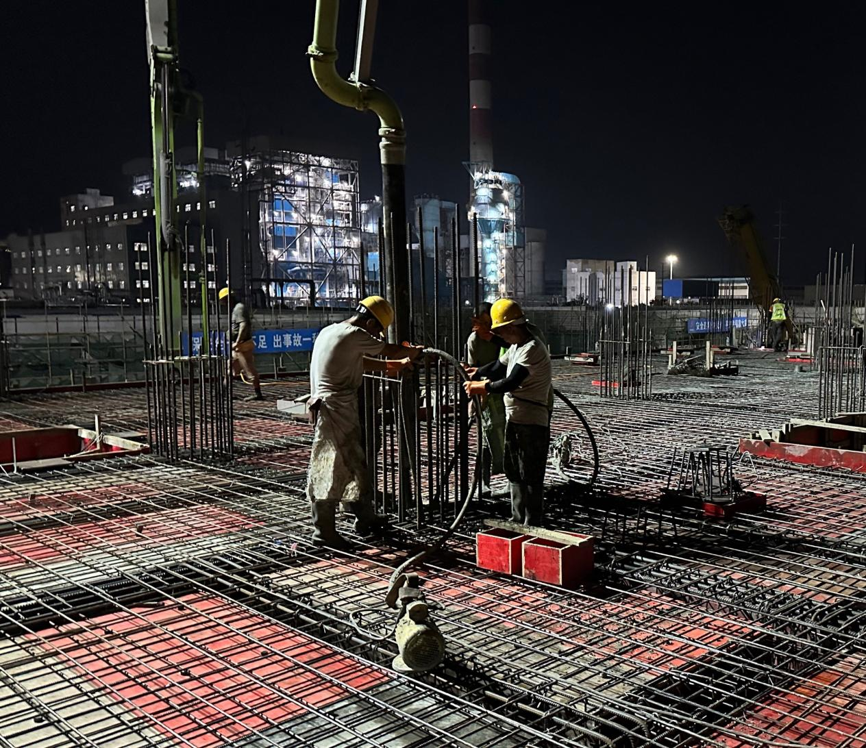 地上一層澆筑前,項(xiàng)目部做了精心施工準(zhǔn)備,領(lǐng)導(dǎo)班子每晚組織召開工程進(jìn)度協(xié)調(diào)會(huì),對(duì)分包單位提出的問題,當(dāng)即答疑,分解次日勞動(dòng)競(jìng)賽工作任務(wù)。同時(shí),項(xiàng)目部編制夜班值班制度,指導(dǎo)、督促、檢查夜班中出現(xiàn)的問題,確保工程進(jìn)度有序推進(jìn)。任務(wù)分解下去,各施工班組馬上投入到準(zhǔn)備工作中,卯足了勁,一定要完成任務(wù)。搶工恰逢夏日高溫、梅雨季節(jié)反復(fù)期間,客觀條件受限,為施工生產(chǎn)帶來困難,項(xiàng)目部利用夜間搶抓施工任務(wù),在雨水到來前盡可能多的進(jìn)行施工,推進(jìn)生產(chǎn)進(jìn)度。