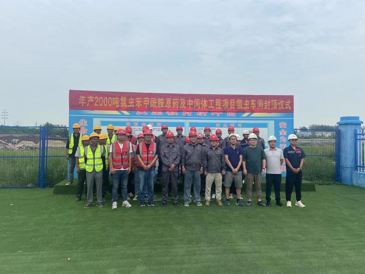 8月31日,蚌埠市淮上區(qū)化工園區(qū)內(nèi)年產(chǎn)2000噸氯蟲苯甲酰胺原藥及中間體項目氯蟲一號車間,伴隨著最后一方混凝土澆筑到位,聳立的車間主體被“封頂大吉”的大紅條幅和紅色祝福標(biāo)語裝點得格外喜慶!建設(shè)單位、監(jiān)理單位、施工單位等共同參加了封頂儀式。
