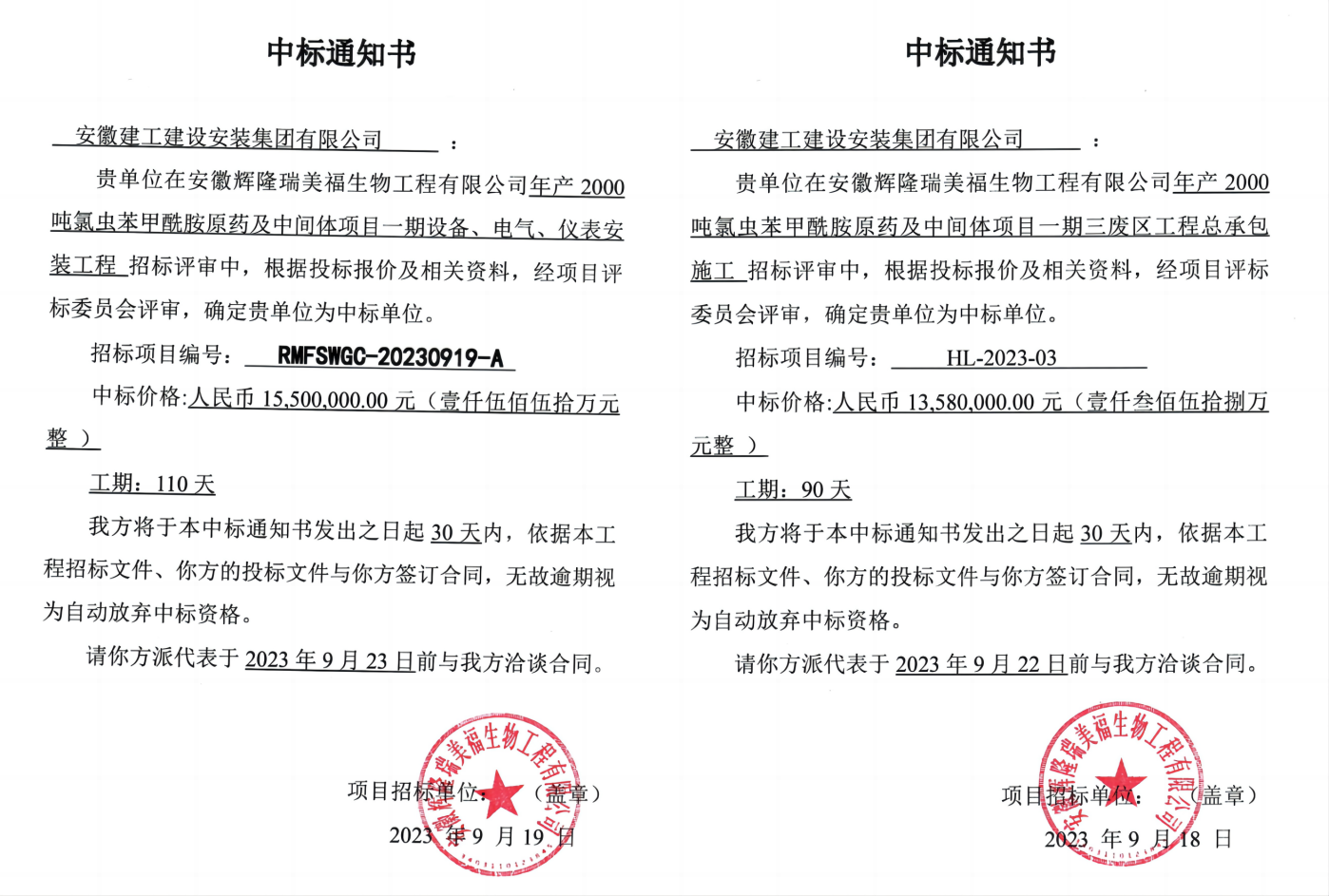 喜訊連連!建工安裝蚌埠分公司在本月連續(xù)中標(biāo)安徽輝隆瑞美福生物工程有限公司年產(chǎn)2000噸氯蟲苯甲酰胺原藥及中間體項(xiàng)目一期三廢區(qū)總承包及設(shè)備安裝工程,合計(jì)中標(biāo)金額2908萬元。分公司前期已中標(biāo)并施工該項(xiàng)目一、二標(biāo)段,目前已累計(jì)中標(biāo)四個(gè)標(biāo)段,合計(jì)中標(biāo)金額達(dá)1.55億元,至此,輝隆一期經(jīng)營工作圓滿達(dá)到預(yù)期目標(biāo)。