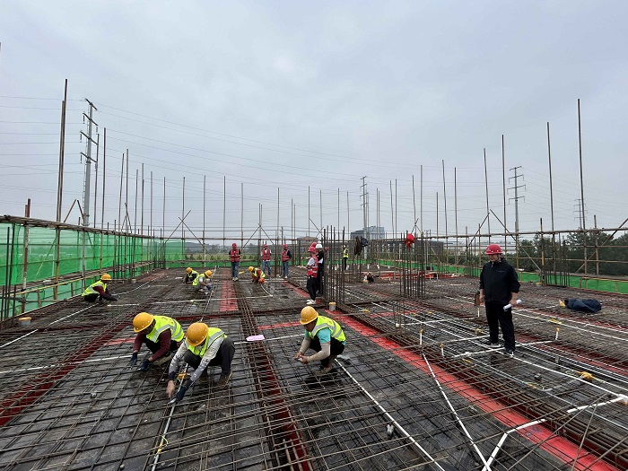 本次鋼筋綁扎比賽共有8名參賽選手,組成四支比賽隊伍,以綜合樓三層的梁板鋼筋綁扎為操作面進行比武,對選手的速度、鋼筋綁扎的牢固性、鋼筋間距、鋼筋位置、觀感及是否按圖施工等方面進行綜合打分。比賽期間,參賽人員根據(jù)圖紙要求,熟練地在鋼筋上穿插、捆扎、固定,分工有序、配合緊密。經(jīng)過1個小時的激烈角逐,四支隊伍的鋼筋綁扎均在規(guī)定時間內(nèi)完成,評審組依據(jù)詳細(xì)的評分標(biāo)準(zhǔn),進行實測質(zhì)量和現(xiàn)場考評,評出一、二、三等獎等。