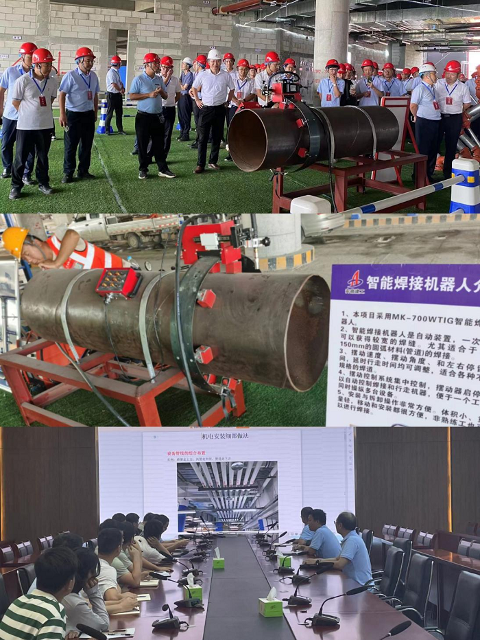 在技術(shù)攻關(guān)小組成員的帶領(lǐng)下,項目部積極響應國家“雙碳”目標和智能建造要求,創(chuàng)新運用智能焊接機器人代替人工焊接,確?!皹影逡贰狈€(wěn)定高效實施。技術(shù)攻關(guān)小組成員經(jīng)過數(shù)次考察試驗,結(jié)合實際引入了MK-700WTIG管道焊接小車,它體積小,重量輕,安裝、拆卸和移動方便,兼具標準角焊機簡易輕便的特點,避免了人為因素所造成的焊縫和質(zhì)量不高現(xiàn)象,可以大幅度提高焊接效率,減少材料損耗和施工返工率,進一步提高生產(chǎn)效率。技術(shù)攻關(guān)小組先后編制了智能焊接機器人操作指南和工藝視頻,有效幫助指導現(xiàn)場項目人員更好地掌握運用智能焊接機器人技術(shù)。通過“BIM+智能焊接機器人”方式,項目部形成了高質(zhì)量、高標準和穩(wěn)定的現(xiàn)場施工模式以及數(shù)字化、智能化的智慧管理模式,大力推動項目智能建造體系的構(gòu)建,助推項目降本增效。
