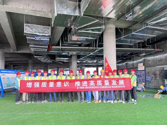 建工安裝新橋國際機場T2航站樓機電安裝項目,位于合肥市新橋國際機場場區(qū)內(nèi),公司承接的施工范圍包括航站樓南北指廊給排水系統(tǒng)、采暖、通風空調(diào)系統(tǒng)、消防及電氣系統(tǒng)安裝等,合同總造價2.747億元,合同工期總?cè)諝v天數(shù)941天,計劃于2025年10月15日竣工。本工程為省一號重點工程,工程體量大,建筑空間大,施工內(nèi)容多、難度大、工期緊,質(zhì)量要求高。自開工建設以來,項目部結(jié)合實際,通過設立“黨員示范崗”和成立黨員技術(shù)攻關(guān)小組,助推項目建設“加速度”。項目黨員同志帶頭研究新工藝、創(chuàng)新使用新方法,大力開展技術(shù)攻關(guān),通過不斷摸索實驗,逐步形成了以BIM+“樣板引路”的智慧施工管理模式,在充分發(fā)揮黨員先鋒模范作用的同時,進一步提高生產(chǎn)效率和工程質(zhì)量,促進黨建和生產(chǎn)經(jīng)營有效融合。
