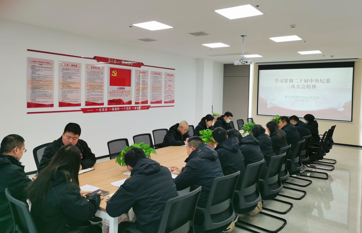 1月18日上午,建工安裝滁州分公司黨支部召開理論學習會,專題學習第二十屆中央紀委三次全會精神。分公司在滁領導班子成員、黨員、項目經(jīng)理、各部門負責人等參加會議。會議由分公司黨支部書記、副經(jīng)理程茂麗主持。