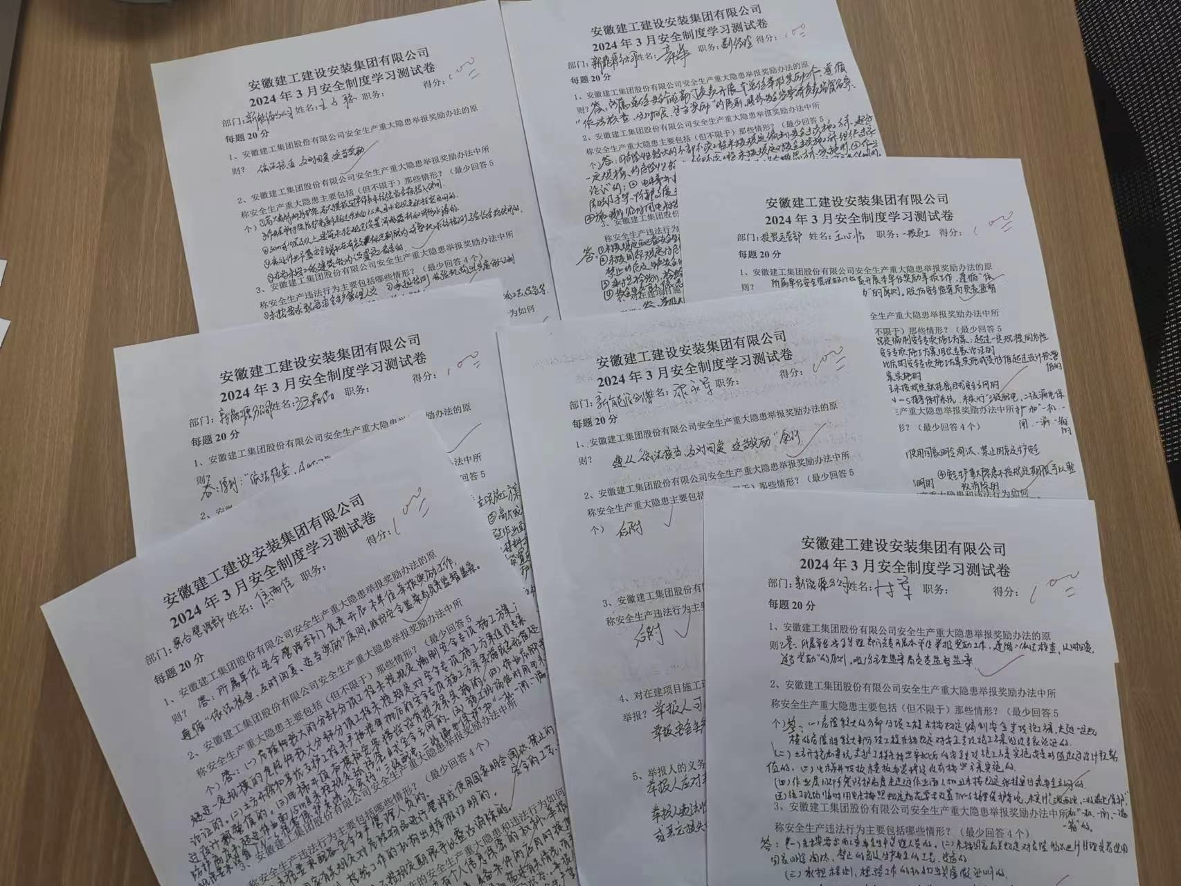 會上,郭萬升帶領(lǐng)全體員工集中學(xué)習(xí)了《安徽建工集團(tuán)股份有限公司安全生產(chǎn)重大隱患舉辦獎勵辦法》,他強(qiáng)調(diào)分公司全體員工要扎實工作,注重細(xì)節(jié),堅持“安全第一,預(yù)防為主,綜合治理,以人為本”十六字方針,以良好的精神面貌和充沛的精力,全身心投入到安全生產(chǎn)及各項工作中。會議結(jié)束后,分公司以書面考試形式對全員進(jìn)行了測試,以鞏固學(xué)習(xí)成果。