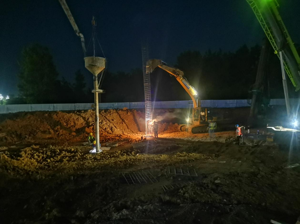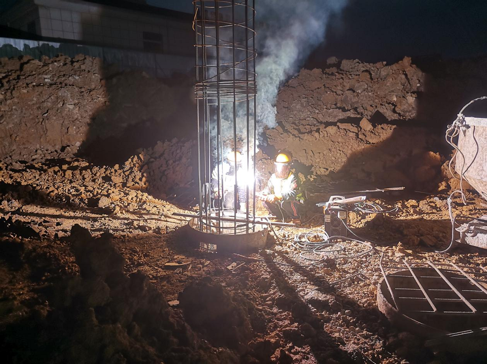 時(shí)間緊、任務(wù)重,為了全速推進(jìn)施工進(jìn)度,項(xiàng)目部堅(jiān)持每天召開“碰頭會(huì)”,解決當(dāng)天施工現(xiàn)場(chǎng)各種問題,不斷優(yōu)化施工組織方案,保障資源配置,把任務(wù)分解到天、具體到點(diǎn),明確責(zé)任人,采取增大工作面、增加施工班組人員和機(jī)械等有效措施加快施工進(jìn)度,加班加點(diǎn)施工,進(jìn)入連續(xù)作戰(zhàn)狀態(tài),奏響了“白+黑”不停歇的沖刺戰(zhàn)歌。目前,在項(xiàng)目部的連續(xù)奮戰(zhàn)和努力下,六鋼大廈酒店基礎(chǔ)部位旋挖灌注樁澆筑已完成,11-7軸/a-d軸開挖完成。正處于樁基承臺(tái)施工階段。