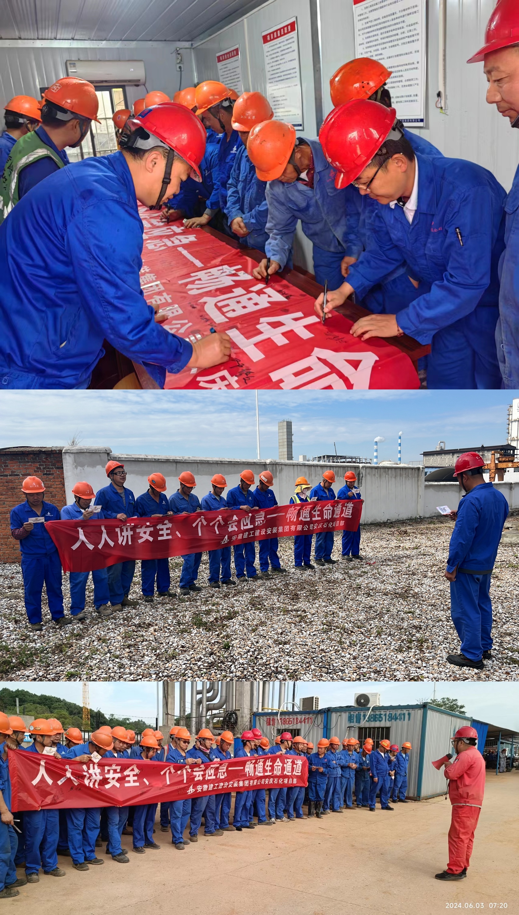 6月3日,安慶分公司在石化項(xiàng)目部舉行2024年“安全生產(chǎn)月”啟動(dòng)儀式,分公司領(lǐng)導(dǎo)班子及分公司機(jī)關(guān)、項(xiàng)目部員工參加本次啟動(dòng)儀式。