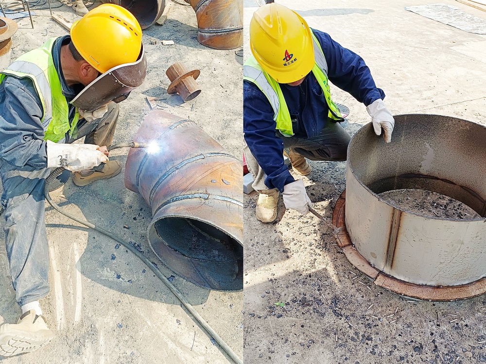 眼下正值施工“黃金期”,合肥七水廠三期安裝工程項(xiàng)目部成員放棄端午小長假,積極投身施工一線,配合做好主體預(yù)埋工作。在施工現(xiàn)場,工人們頭頂烈日各司其職,有的在制作彎頭、有的在加工防水套管、還有的在預(yù)埋電氣配管,全力推進(jìn)施工生產(chǎn)安全、高效、有序進(jìn)行。