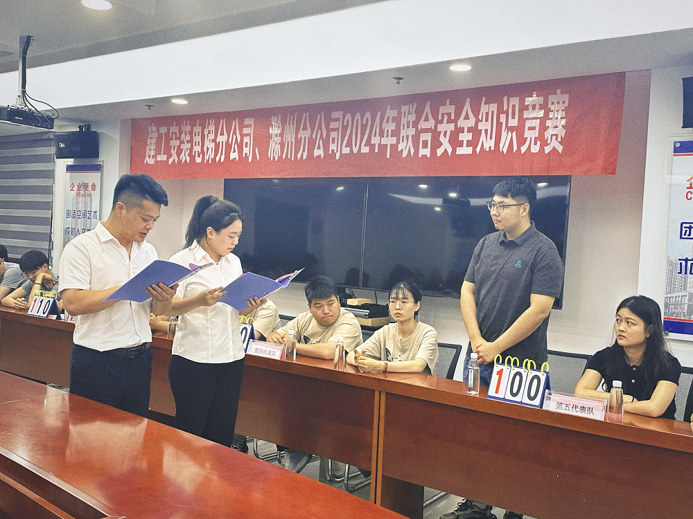 為提升員工安全管理意識(shí),推動(dòng)安全月活動(dòng)走深走實(shí),6月14日下午,電梯分公司、滁州分公司聯(lián)合舉辦以“人人講安全、個(gè)個(gè)會(huì)應(yīng)急——暢通生命通道”為主題的安全知識(shí)競賽。公司工程管理部安全辦公室負(fù)責(zé)同志擔(dān)任比賽評委,電梯分公司、滁州分公司領(lǐng)導(dǎo)班子、在肥員工參加活動(dòng)。