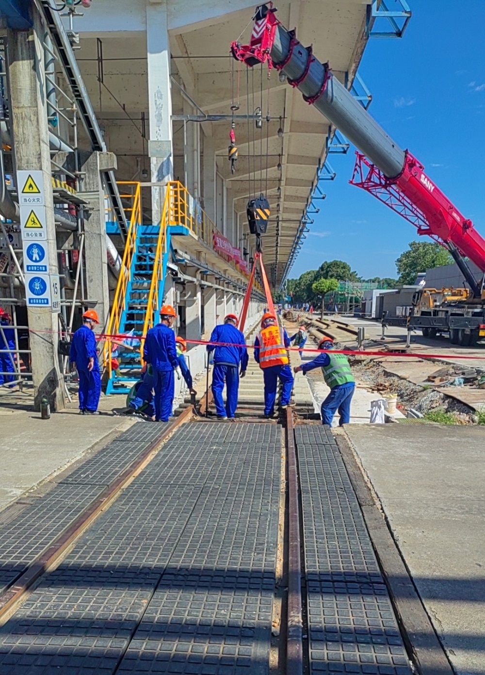 在建工安裝安慶分公司新增鐵路接卸純苯設(shè)施項目施工現(xiàn)場,為將前期因雨天耽誤的工期“搶”回來,施工隊伍采取快速穿插方式對電纜鋪設(shè)、整體道床排水溝施工、站內(nèi)管廊焊接等項目有條不紊地同步推進,力爭進度如期推進。