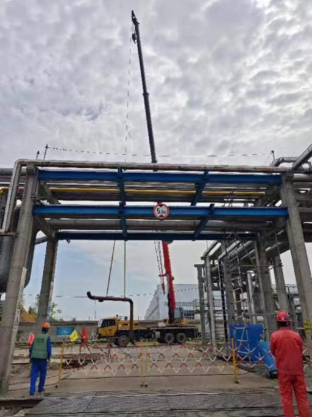 目前該項目已完成支架制作安裝10噸、控制室和緩沖罐及地下罐池建造、站內(nèi)管道焊口共計約9618吋、外管廊管道焊口共計約3845吋。項目實施過程中,項目部同甲方通力協(xié)作、合力攻堅,在保安全的前提下優(yōu)化施工計劃,完善施工組織,在高溫雨季全力以赴三班倒、搶工期、趕進度,保障項目建設(shè)高質(zhì)量穩(wěn)步推進,目前項目整體進度已完成55%。