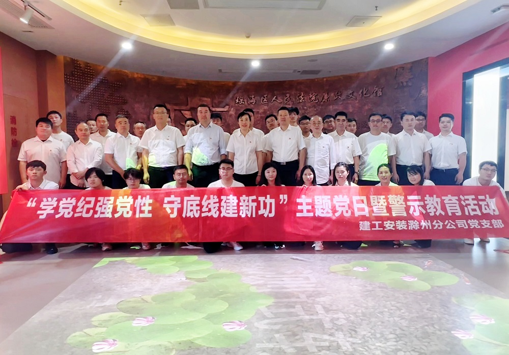 為扎實(shí)推進(jìn)黨紀(jì)學(xué)習(xí)教育走深走實(shí),進(jìn)一步增強(qiáng)分公司黨員干部黨紀(jì)觀念和廉潔意識(shí),培育分公司“清廉文化”干事創(chuàng)業(yè)氛圍,5月16日下午,建工安裝滁州分公司黨支部組織分公司領(lǐng)導(dǎo)班子成員、機(jī)關(guān)部門負(fù)責(zé)人、項(xiàng)目經(jīng)理、全體黨員和團(tuán)員青年共40余人,赴瑤海區(qū)人民法院廉政文化館開(kāi)展“學(xué)黨紀(jì)強(qiáng)黨性、守底線建新功”主題黨日暨警示教育活動(dòng)。