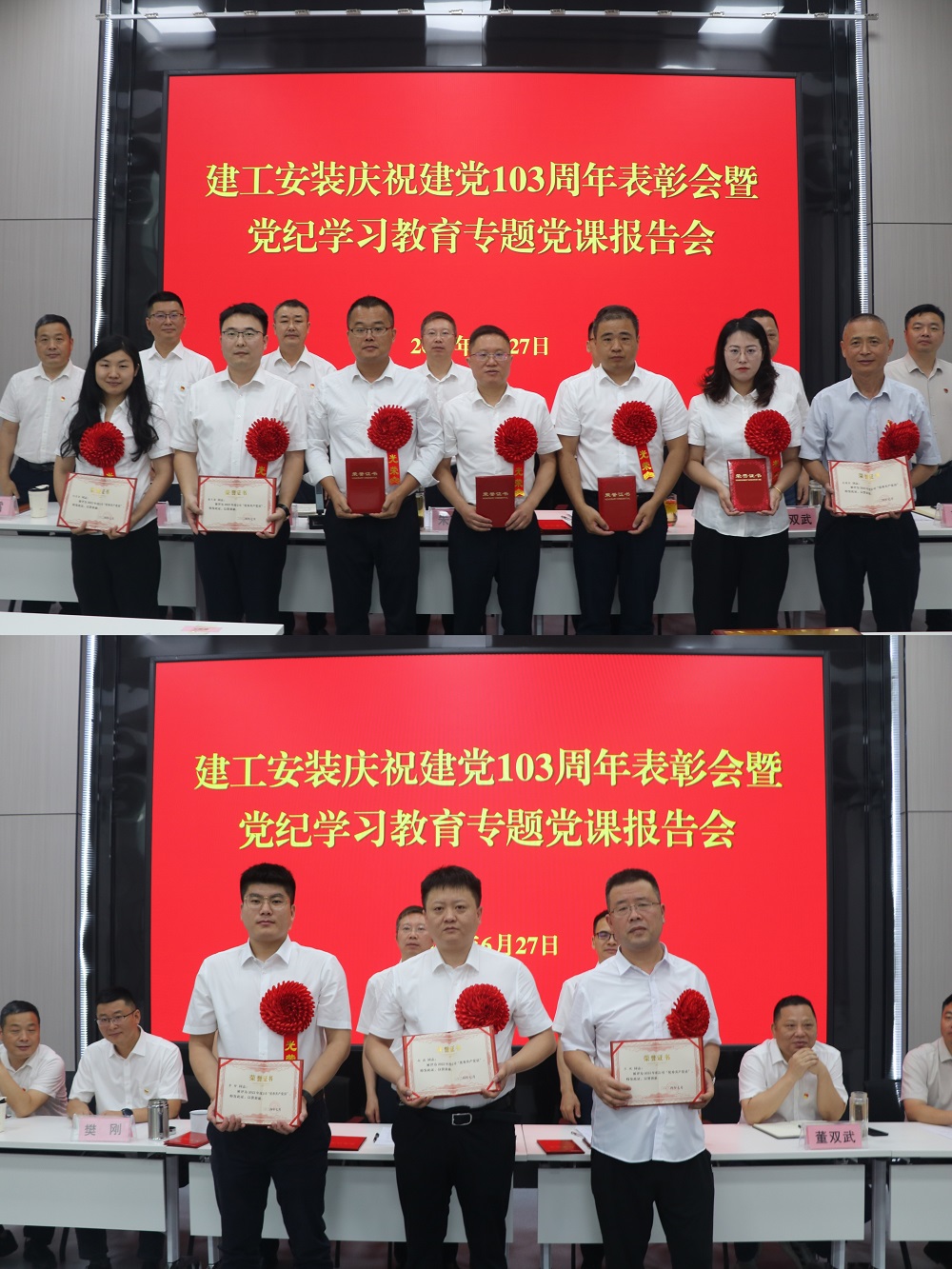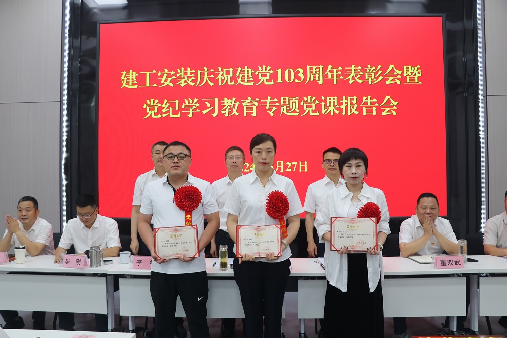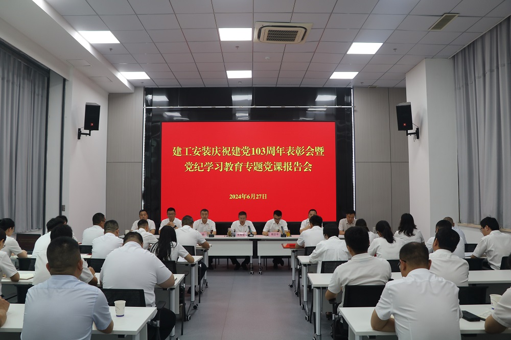 為慶祝中國共產(chǎn)黨成立103周年,扎實(shí)推進(jìn)黨紀(jì)學(xué)習(xí)教育走深走實(shí)。6月27日上午,建工安裝黨委召開慶祝建黨103周年表彰會暨黨紀(jì)學(xué)習(xí)教育專題黨課報告會。公司領(lǐng)導(dǎo)班子成員出席會議,會議由公司黨委副書記、副總經(jīng)理周正平主持。