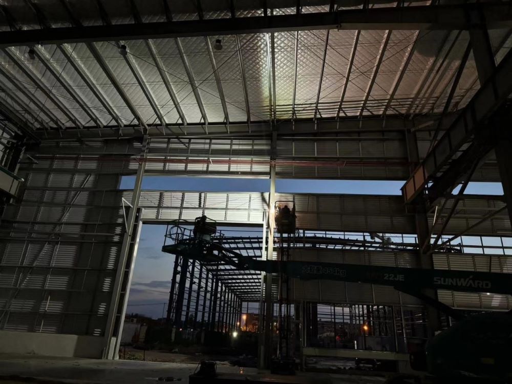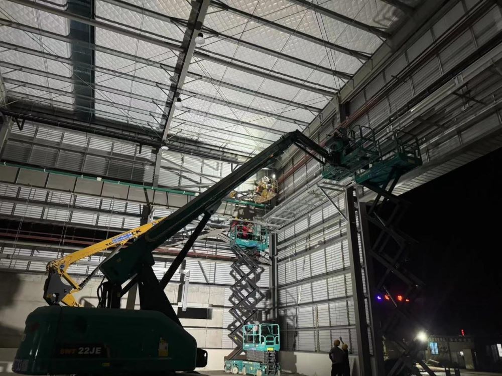 建工安裝合肥分公司施工內(nèi)容涉及2#重鋼車間主次構(gòu)安裝、圍護(hù)系統(tǒng)、門窗、防火涂料、通風(fēng)氣樓和機電安裝工程(裝飾裝修、工藝管線、消防、給排水、電氣、通風(fēng)空調(diào)等)。為保質(zhì)保量完成施工任務(wù),分公司派駐分管領(lǐng)導(dǎo)現(xiàn)場駐點,項目管理團(tuán)隊日夜跟進(jìn),施工人數(shù)達(dá)到100多人,曲臂車、登高車等各種現(xiàn)場施工機械達(dá)60余輛。本項目留給機電安裝工期緊任務(wù)重,項目全體人員日夜奮戰(zhàn),最終刷新15日大面完工耀眼戰(zhàn)績,為基地順利投產(chǎn)奠定堅實基礎(chǔ)。