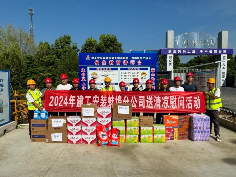 分公司領(lǐng)導(dǎo)班子先后到六鋼大廈(酒店)工程施工總承包項目、蚌埠高新區(qū)電子信息產(chǎn)業(yè)園EPC項目室外廊架管網(wǎng)工程項目、年產(chǎn)2000噸氯蟲苯甲酰胺原藥及中間體項目、安徽深巖醫(yī)藥化工科技有限公司醫(yī)藥中間體及新材料項目廠區(qū)單體工程項目、水刺無紡布制品.濕廁紙生產(chǎn)項目現(xiàn)場,為一線施工人員準備了礦泉水、冰紅茶、綠豆、西瓜等防暑降溫物品,對他們的辛勤付出表示感謝,并反復(fù)叮囑大家要注意防暑降溫,合理安排施工和休息時間,確保施工安全。