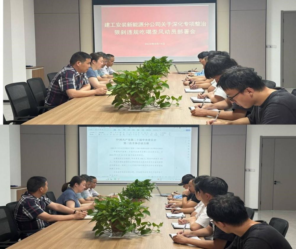 8月14日下午,建工安裝新能源分公司召開專題會(huì)議,對宣貫深化專項(xiàng)整治狠剎違規(guī)吃喝歪風(fēng)工作進(jìn)行了動(dòng)員部署,會(huì)議由黨支部書記劉紅艷主持。