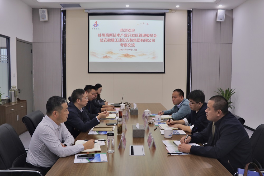 會上,朱珍宏重點介紹了安徽建工集團(tuán)三大戰(zhàn)略布局基本情況以及建工安裝集團(tuán)發(fā)展歷程、業(yè)務(wù)范圍、核心競爭優(yōu)勢等;方浩亮分享了蚌埠高新區(qū)和自貿(mào)區(qū)在電子信息、高端制造和新材料新能源等領(lǐng)域所取得的成就與獨特技術(shù)優(yōu)勢。雙方重點圍繞產(chǎn)業(yè)投資、園區(qū)建設(shè)、技術(shù)創(chuàng)新、光伏儲能方面充分交換意見,為下一步合作打下堅實的基礎(chǔ)。