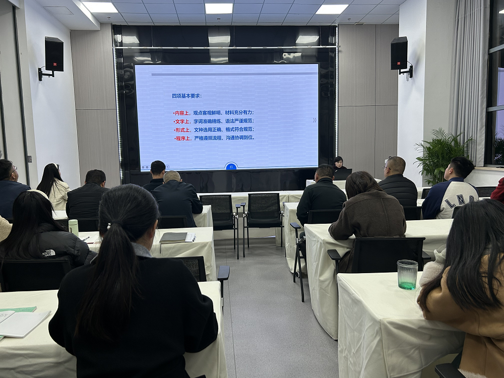 黃俊筠圍繞“日常辦公制度、常見公文寫作要點、商務禮儀”等方面內容,重點解讀了業(yè)務接待、差旅費、跟進督辦等日常辦公制度。結合自身工作體會,黃俊筠用豐富的課件內容,由淺入深地講解了常用公文的寫作技巧和接待工作的基本禮儀,并以實際案例分析工作中容易出現的問題和疏漏的細節(jié),提出改進的方法。