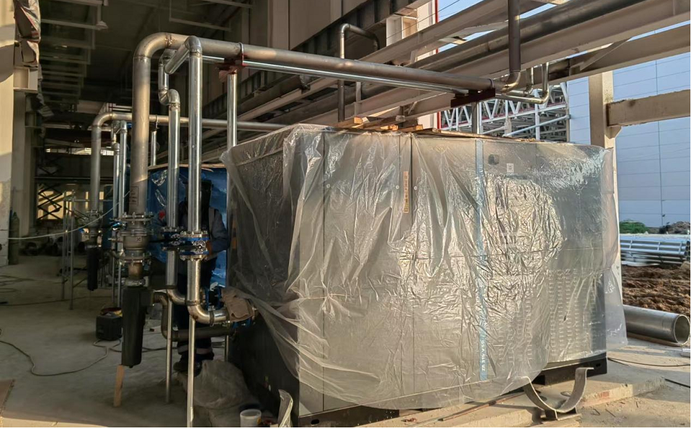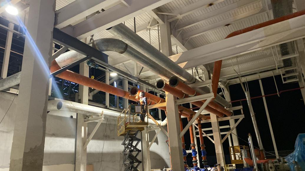 站房一(能源中心)作為整個(gè)廠區(qū)的“發(fā)動(dòng)機(jī)”,建筑面積雖僅有11000平方米,但單體機(jī)電安裝造價(jià)約8000萬元,施工內(nèi)容涵蓋空壓站、污水處理站、高效制冷機(jī)房、消防泵房及給水加壓站房等全廠幾乎所有核心“部件”。面對施工工藝復(fù)雜、工期緊、標(biāo)準(zhǔn)高且施工過程中設(shè)計(jì)變更頻繁、設(shè)備供貨周期長、資金不到位等多種不利因素,項(xiàng)目部積極想辦法克服困難,采取主動(dòng)對接各方資源,深化設(shè)計(jì)確認(rèn)、督促設(shè)備批量排產(chǎn)、加快技術(shù)交底完成、倒排施工計(jì)劃等一系列有效措施,堅(jiān)持“搶進(jìn)度、抓質(zhì)量、保安全”核心思想不動(dòng)搖,加班加點(diǎn)推進(jìn)項(xiàng)目建設(shè)。截至目前,站房一(能源中心)形象進(jìn)度已完成55%以上,實(shí)現(xiàn)產(chǎn)能過半,為確保關(guān)鍵合同節(jié)點(diǎn)“2025年2月28日公用動(dòng)力系統(tǒng)調(diào)試完成,并具備各生產(chǎn)條件”打下堅(jiān)實(shí)基礎(chǔ)。
