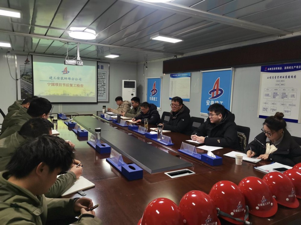 2025年2月11日,分公司黨支部書記、經(jīng)理趙銘亮一行赴寧國(guó)水刺無紡布制品、濕廁紙生產(chǎn)項(xiàng)目開展春節(jié)后復(fù)工檢查,并召開現(xiàn)場(chǎng)工作會(huì)議,對(duì)項(xiàng)目工期進(jìn)度、質(zhì)量管控、成本管控、人才培養(yǎng)等方面進(jìn)行安排部署,為項(xiàng)目新一年建設(shè)開好局、起好步指明方向。分公司副經(jīng)理張斌及各部門負(fù)責(zé)人陪同檢查。