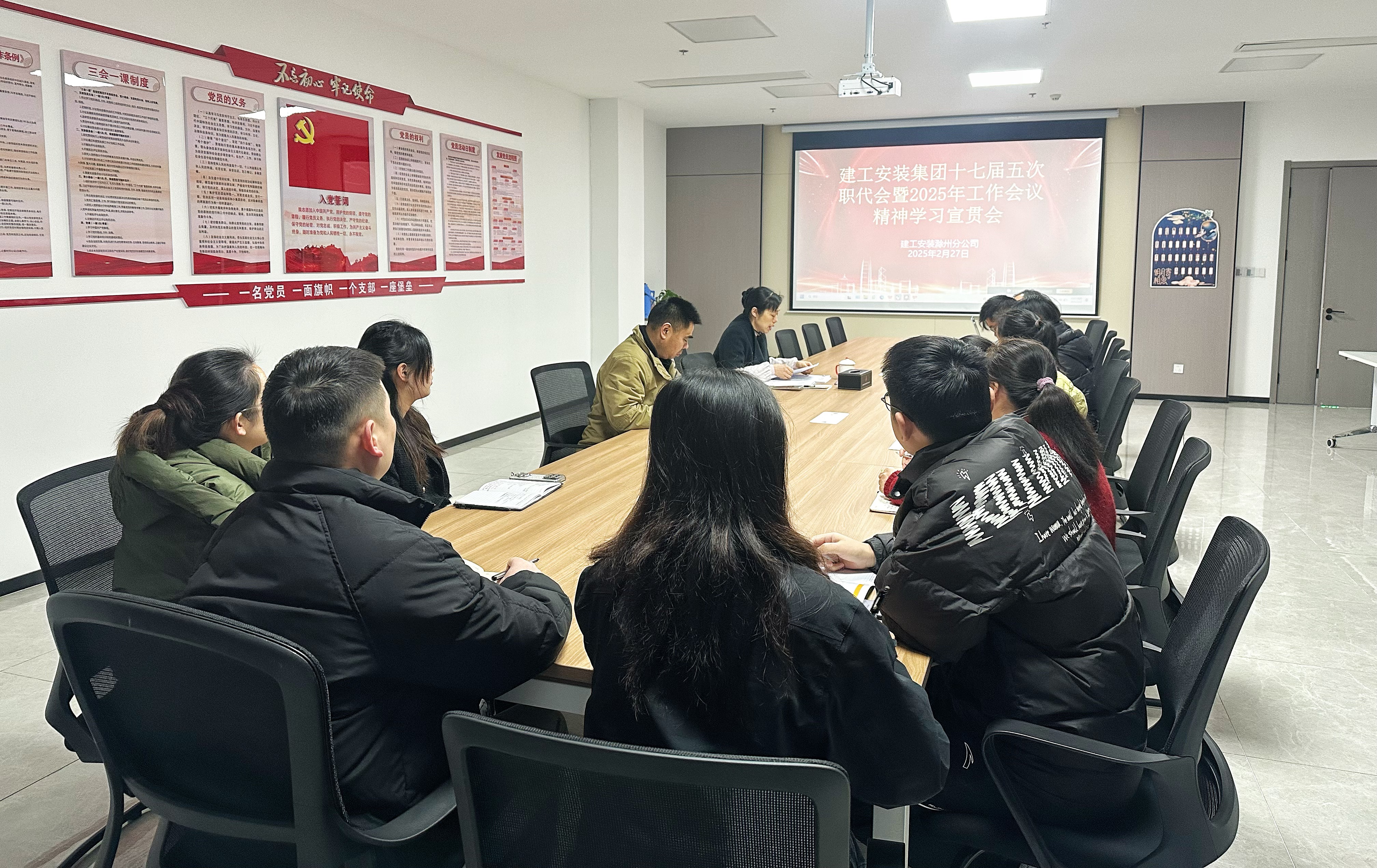 2月27日上午,建工安裝滁州分公司分別在機(jī)關(guān)和項(xiàng)目一線同步召開建工安裝十七屆五次職代會暨2025年工作會議精神專題學(xué)習(xí)宣貫會。分公司領(lǐng)導(dǎo)班子成員及部分職工代表、項(xiàng)目經(jīng)理作為宣貫人主持會議。