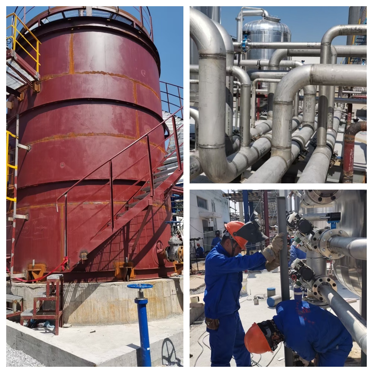 面對重重挑戰(zhàn),土建、安裝、電儀等各專業(yè)在有限的施工區(qū)域和緊張的工期內(nèi)緊密協(xié)作,加班加點(diǎn),全力確保項(xiàng)目按期交付。安裝專業(yè)任務(wù)繁重,需現(xiàn)場制作1座120立方米儲罐,安裝4臺除鐵過濾器、3臺精密過濾器、3排管廊架以及2臺提升泵。此外,還需鋪設(shè)350米各規(guī)格(DN200、DN150、DN100等)的不銹鋼工藝管道和250米碳鋼管道。土建專業(yè)主要負(fù)責(zé)廢水輸送泵、廢水收集罐、精密過濾器、除鐵反應(yīng)器設(shè)備及配套管架基礎(chǔ)的建設(shè),以及后期地坪的恢復(fù)。電儀專業(yè)則需完成20千米電纜敷設(shè),安裝2臺機(jī)柜、2臺操作臺、1套控制儀表設(shè)備和1套除鐵成套裝置儀表,同時完成2千米配管和200米槽盒的安裝調(diào)試工作。