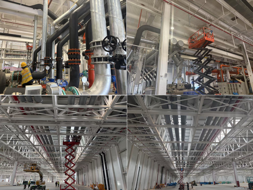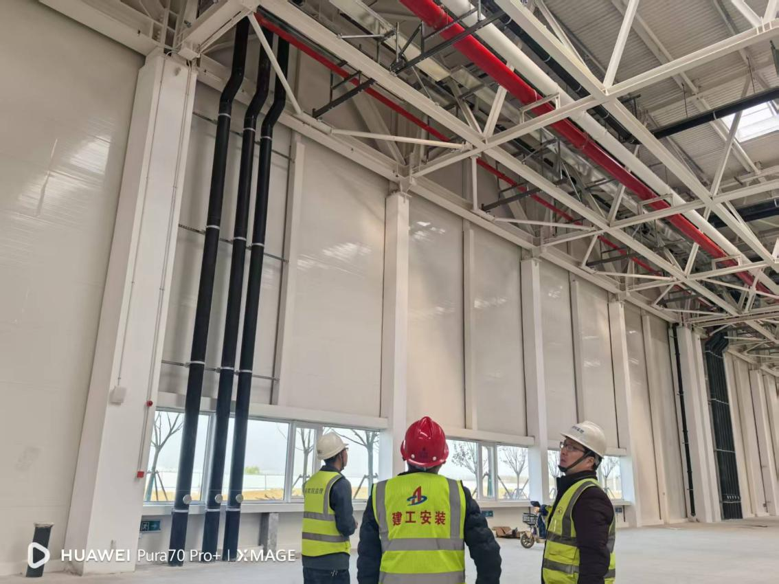 自一季度以來,項(xiàng)目部以“2025開局即決戰(zhàn)”的昂揚(yáng)斗志,迅速掀起“大干快上”施工熱潮。對各車間、各系統(tǒng)剩余工程量展開全面梳理統(tǒng)計(jì),同時(shí)針對剩余工程量堅(jiān)持每日召開專題會,以倒排計(jì)劃為“發(fā)令槍”,對照時(shí)間節(jié)點(diǎn)要求各班組加班加點(diǎn)、不折不扣完成。截至發(fā)稿,車間一大面積施工基本完成,形象進(jìn)度完成約96%;車間二形象進(jìn)度完成約90%;車間四形象進(jìn)度完成約92%;站房一各設(shè)備管道基本安裝完成,正在調(diào)試中,形象進(jìn)度完成約90%。目前,各車間工藝生產(chǎn)均已進(jìn)場,燃?xì)忮仩t點(diǎn)火成功、空壓站完成試運(yùn)行、工藝24h冷凍水、恒溫恒濕空調(diào)均已投入使用;各車間工藝區(qū)送電已到位、供水完成。