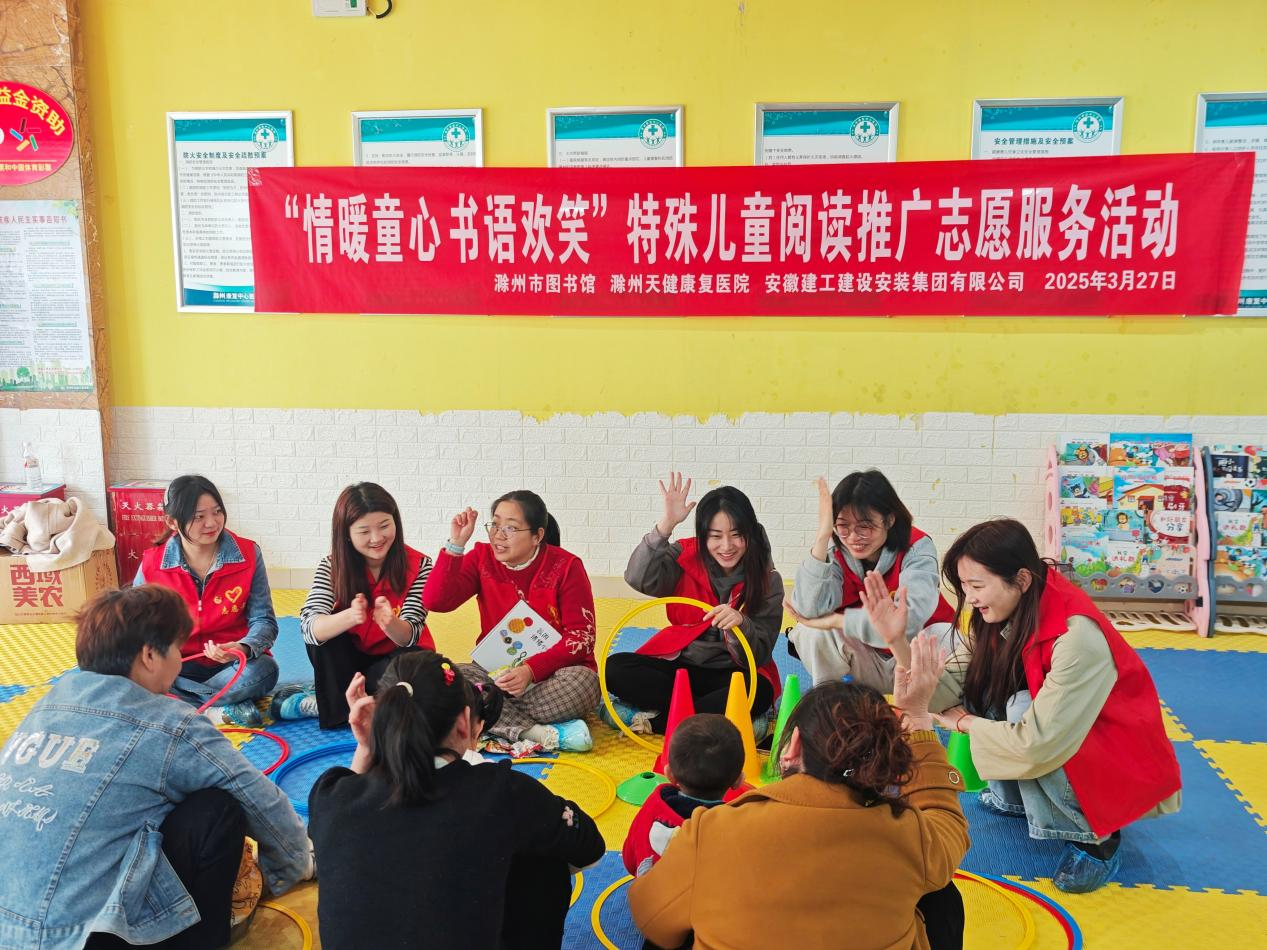 為傳遞社會關(guān)懷,助力特殊兒童健康成長,3月27日,建工安裝團(tuán)委聯(lián)合滁州市圖書館組織團(tuán)員青年志愿者走進(jìn)滁州康復(fù)醫(yī)院,開展“情暖童心 書語歡笑”特殊兒童閱讀推廣志愿服務(wù)活動。志愿者為孩子們送去牛奶、餅干、繪本圖書等愛心物資,用溫暖陪伴為特殊兒童編織美好記憶,用愛心點(diǎn)亮特殊兒童成長路。