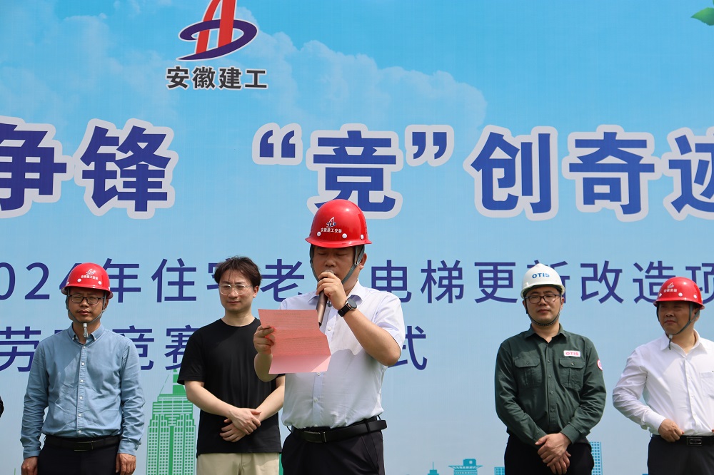 夏國祥強(qiáng)調(diào),蚌埠2024年住宅老舊電梯更新改造項(xiàng)目作為蚌埠市重點(diǎn)民生工程意義重大、影響深遠(yuǎn)。開展此次勞動競賽活動,就是要通過以競創(chuàng)優(yōu)、以賽促效的形式進(jìn)一步加快施工進(jìn)度,提升施工質(zhì)量,為全力保障工程建設(shè)總目標(biāo)的順利實(shí)現(xiàn)打下堅(jiān)實(shí)基礎(chǔ)。以高質(zhì)量項(xiàng)目建設(shè)成績來進(jìn)一步提升建工安裝在城市住宅老舊小區(qū)電梯更新改造領(lǐng)域的品牌影響力和技術(shù)硬實(shí)力。
