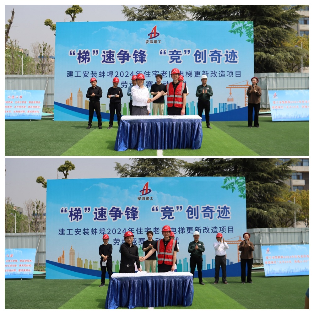 為貫徹集團(tuán)和公司兩級職代會精神,落實(shí)公司勞動競賽活動相關(guān)工作要求,加快工程建設(shè)進(jìn)度,不斷提高項(xiàng)目管理和建設(shè)水平,4月10日,建工安裝電梯分公司蚌埠2024年住宅老舊電梯更新改造項(xiàng)目舉行了以“梯”速爭鋒 “競”創(chuàng)奇跡為主題的勞動競賽啟動儀式,正式吹響了“大干20天,決戰(zhàn)4.30”勞動競賽的奮進(jìn)號角。蚌埠市城市投資控股有限公司代表、分公司班子成員、項(xiàng)目部管理人員、各參建單位代表及作業(yè)人員共130余人參加活動。