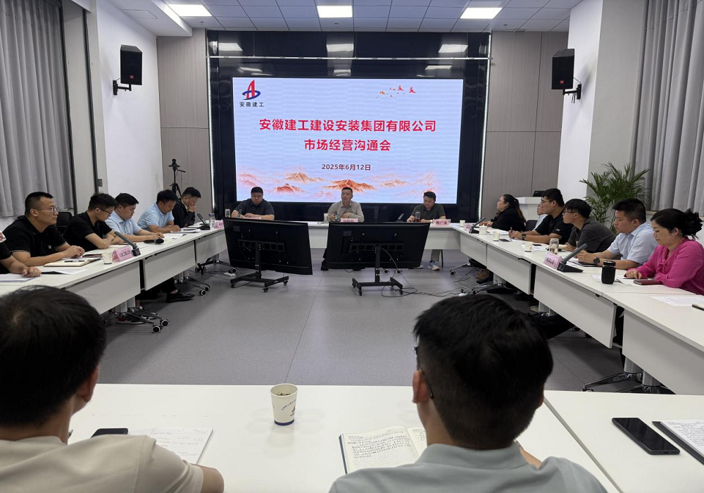 6月12日下午,建工安裝召開市場經(jīng)營溝通會,公司黨委委員、副總經(jīng)理劉曉剛、費(fèi)廣清出席會議,市場開發(fā)和投資部經(jīng)理許杰主持會議。