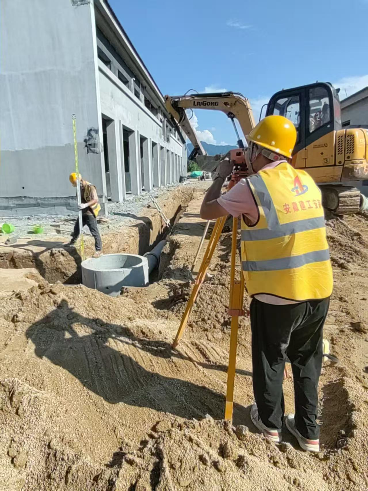 熱浪滾滾中,工人手把水準(zhǔn)儀進行井底標(biāo)高測量