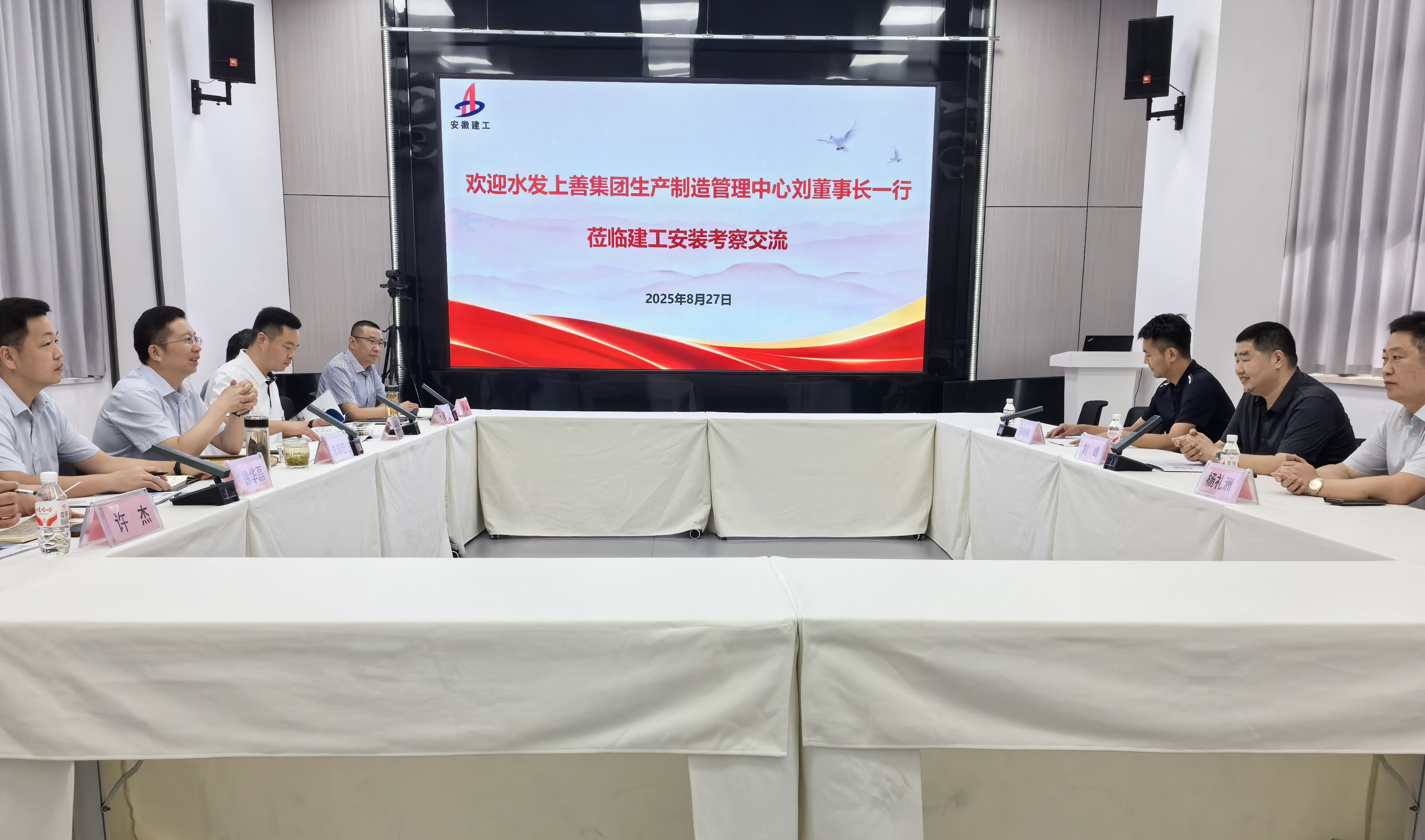 8月27日上午,山東水發(fā)上善集團生產(chǎn)制造管理中心董事長劉峰一行到訪建工安裝。建工安裝黨委書記、董事長朱珍宏熱情接待并進行工作會談。